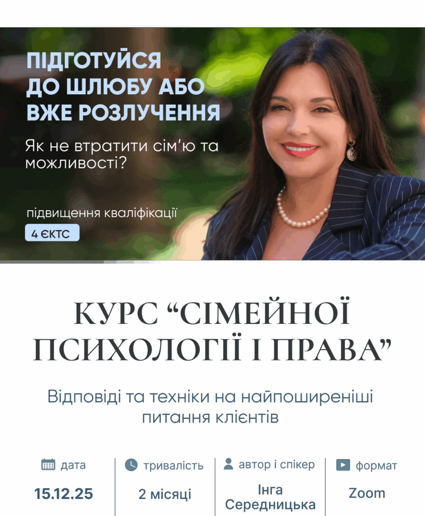 не лише методами консультування, а й розуміти юридичні аспекти сімейних відносин:
